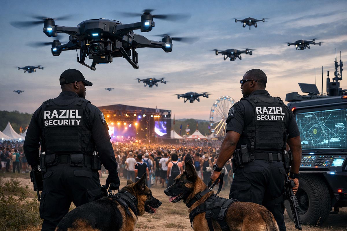 For large-scale events such as music festivals—particularly those held in remote or outskirts locations, we deploy drones to provide continuous aerial surveillance. This ensures enhanced security coverage across wide and often difficult-to-monitor areas. Our drone operations help safeguard both event organizers and attendees by proactively identifying and responding to potential threats, including unauthorized access, theft, or even risks posed by wildlife. We also extend our drone services to residential security, particularly during peak travel periods such as holidays, when many homeowners are away.
